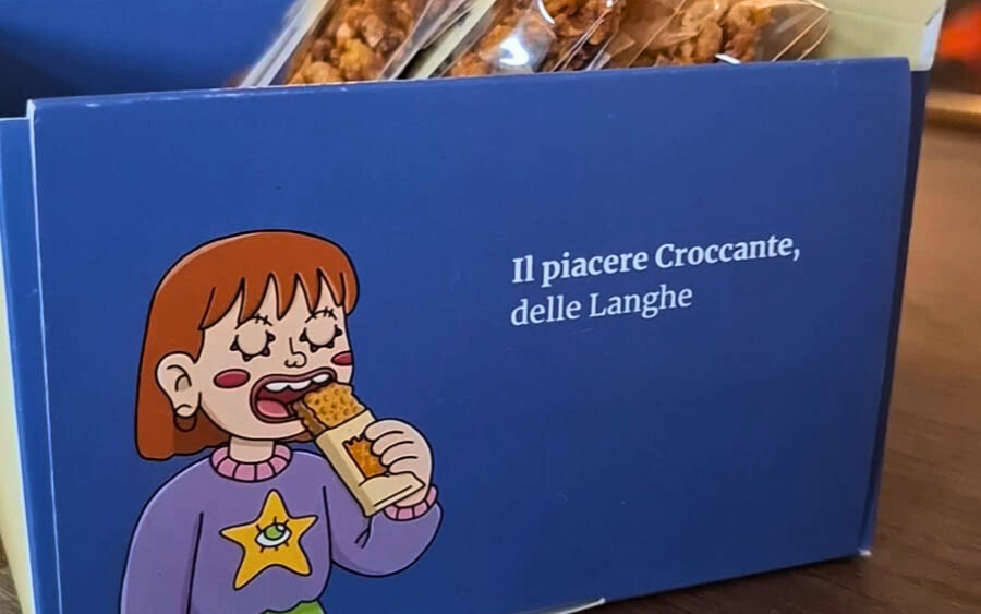 Il risultato? Un’icona stilizzata che richiama la forma della barretta stessa, creando un legame immediato tra prodotto e luogo d’origine.