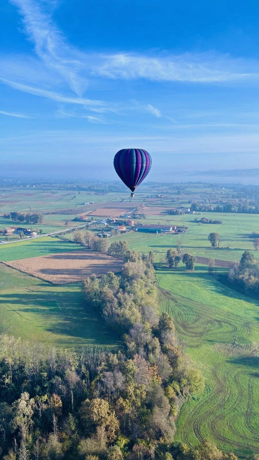 Fluttua leggero sopra le grandi pianure piemontesi, seguendo il ritmo lento della natura e scoprendo la bellezza autentica di un paesaggio senza confini.