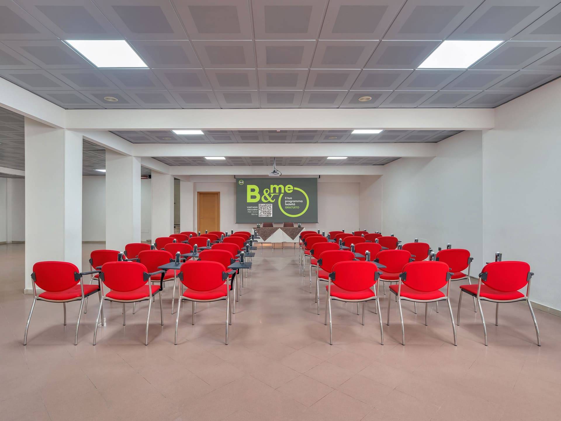 A fully equipped space for meetings, presentations, and training courses, which can be configured to suit your needs and can accommodate up to 100 people. A bright, functional environment featuring top-tier technical equipment for business events