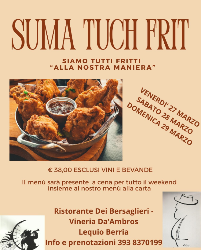 Il ristorante propone un menù completamente dedicato alla frittura, per tutto il weekend a cena