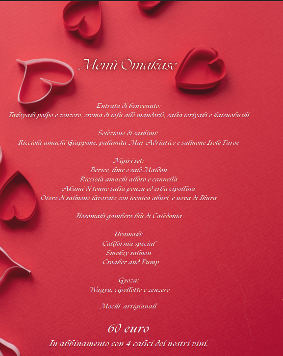 I piatti verranno serviti in abbinamento con 4 calici dei nostri vini.