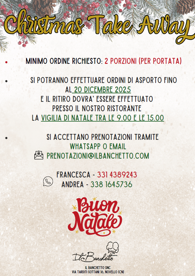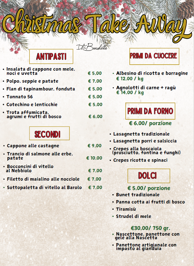 Il Banchetto è lieto di comunicarvi che potrete degustare il suo menù di Natale anche takeaway!