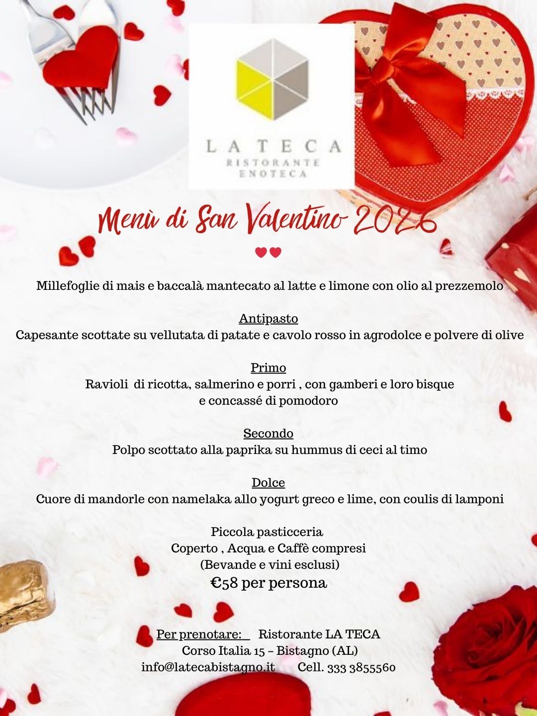 Festeggia San Valentino alla Teca con un menù dedicato all’amore.