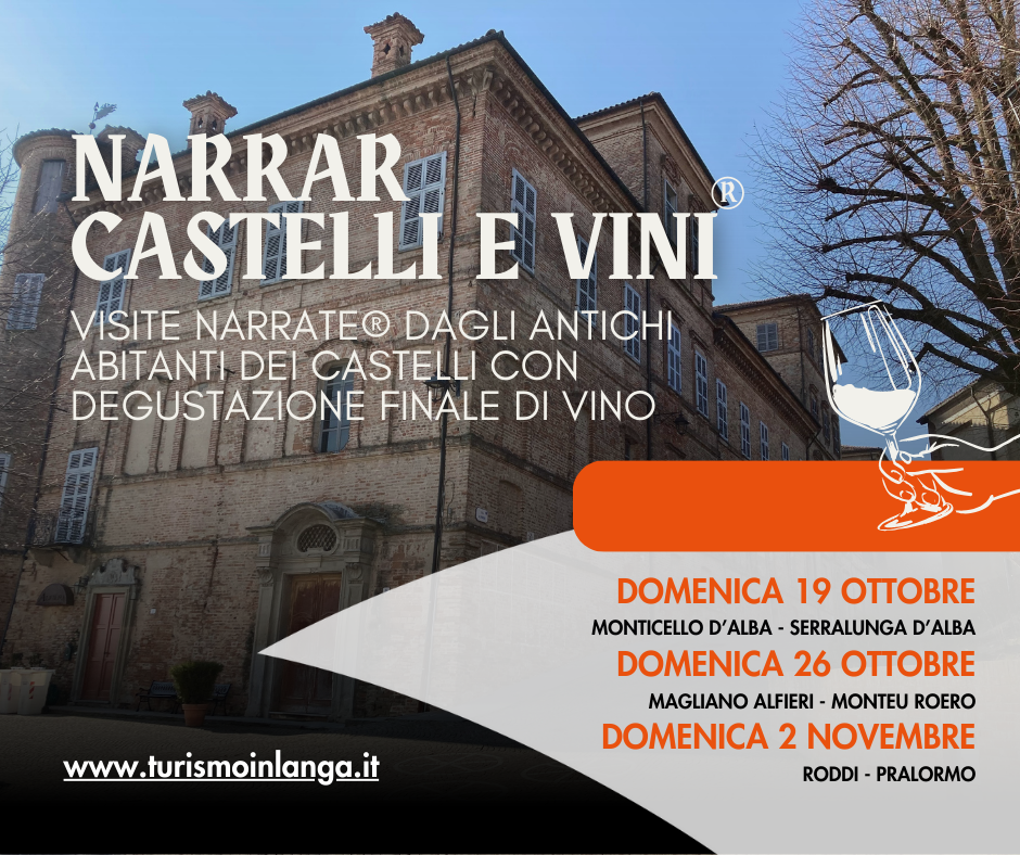 “Narrar castelli e vini®”, quest’anno alla XXV edizione, è organizzatao dall’Associazione Turismo in Langa in collaborazione con la Barolo & Castles Foundation, l’Associazione Bel Monteu, l’Associazione Castello di Monticello, l’Associazione Terre Alte, con i proprietari dei manieri e con il patrocinio dell’Ente Turismo Langhe Monferrato Roero.