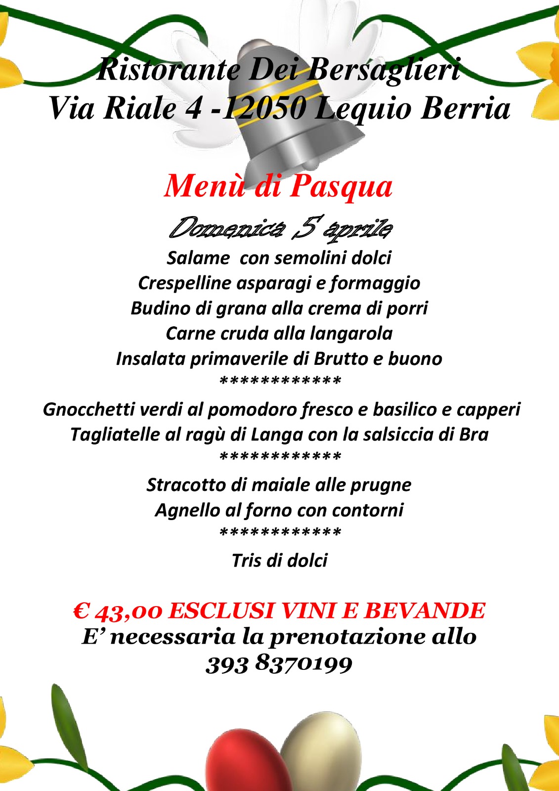 Il ristorante Dei Bersaglieri vi invita a trascorrere la Pasqua godendovi un menù delicato e primaverile.