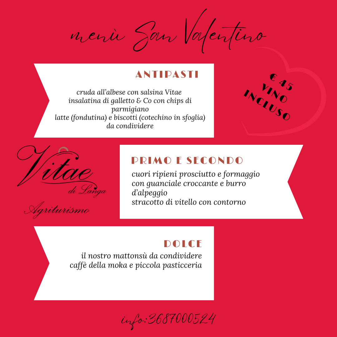 L’agriturismo Vitae di Langa vi invita a celebrare San Valentino nelle sue eleganti sale per godere dei piatti tipici della tradizione piemontese.